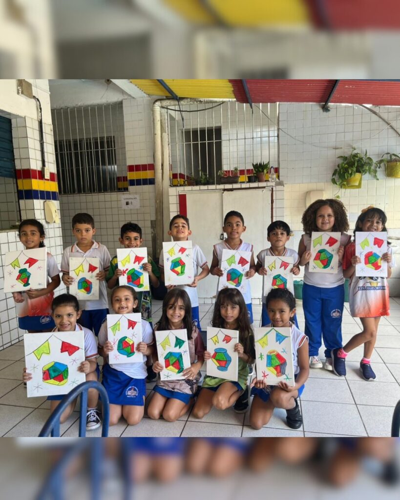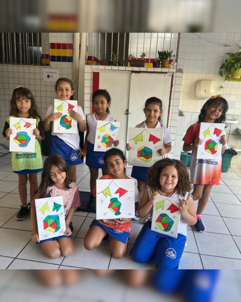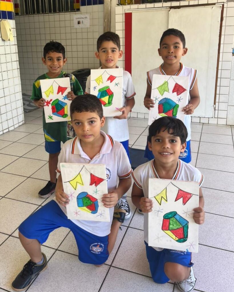 No clima do mês junino, nossos pequenos começaram a atividade cantando “Cai, cai balão” e, em seguida, colocaram a mão na massa para recriar uma imagem cheia de cores e alegria! Com tintas, pincéis e muita imaginação, eles desenvolveram habilidades motoras, atenção e percepção visual – tudo isso de forma **lúdica e divertida**!